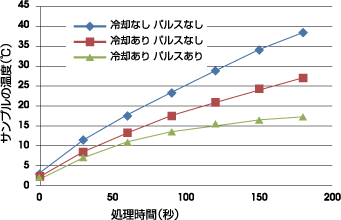 パルスなし(連続照射)、パルスあり(ON 10秒、OFF 30秒)