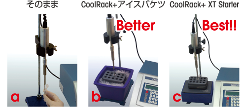 (b):サンプルは冷却されていますが、氷が溶けるとチューブの高さが変わり、再現性が良いとは言えません。
