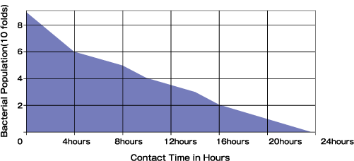 キャビネット本体は亜鉛鋼板上にエポキシ粉体が塗装されています。粉体には菌の増殖を抑える銀含有成分が含まれています。右図は、108 以上のバクテリアが、ISOCIDEコーティングにより24時間後には死滅していることを示しています。
