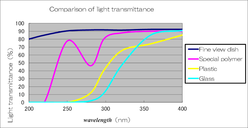 The bottom of the dish ,Fine view dish, is made of quartz glass that has excellent fluorescence transparency.