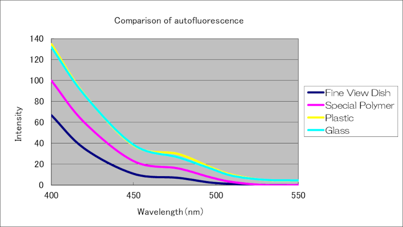 Because the bottom of the Fine view dish is made of quartz glass plate and its autofluorescence is extremely low, it can provide a researcher with high-contrast images since autofluorescence of the glass is extremely low.