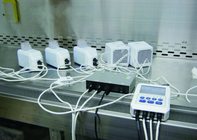 - Generate dry fog of 6μm diameter droplets by ultrasonic method for effective vaporization.