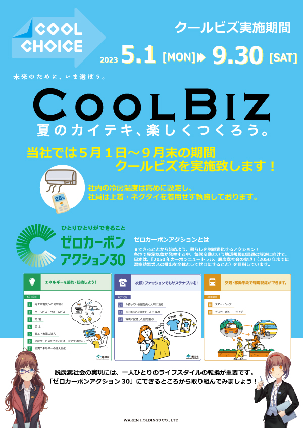 ワケングループでは、2023/5/1~2023/9/30までの期間でクールビズに取り組みます。