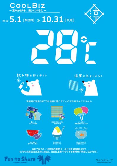 ワケングループでは、5/1~10/31までの期間でクールビズに取り組みます。