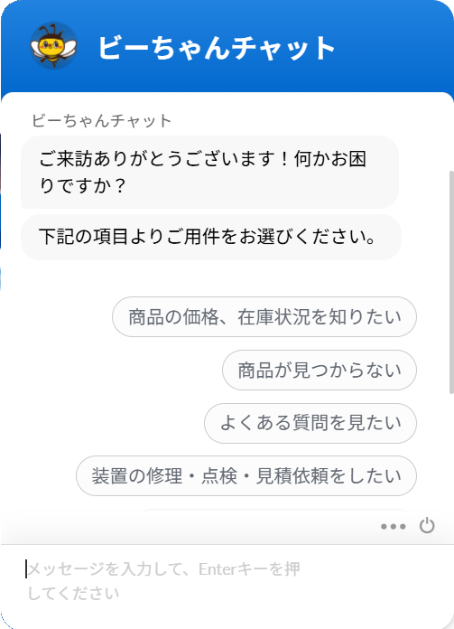 【お知らせ】チャットボット機能の初期画面表示について