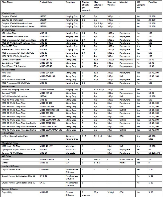 | MD11-00U-10 | MRC結晶化スクリーニングプレート(96条件・2ドロップ)【UV透過性樹脂】 | 10枚入 |