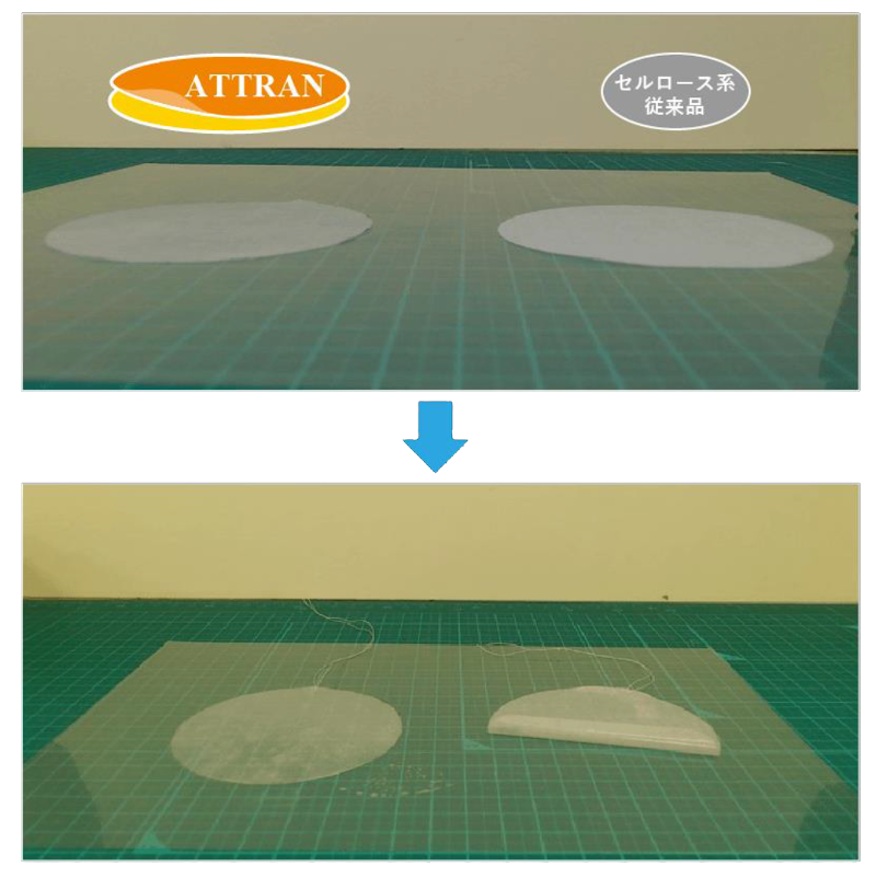 ATTRANは水に浸漬してもカールが発生しにくく形状安定性に優れています。
