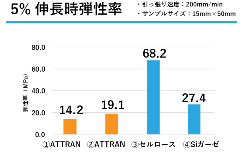 ATTRANはセルロースやSiガーゼよりも柔軟性が高く、患部への追従性に優れています。