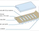 裏側に接着面を備えたボトムフリー6チャンネルスライドです。お好みのボトム(例:ガラススライド、シリコンチップなど)と組み合わせてご使用いただけます。