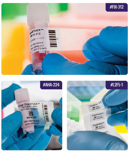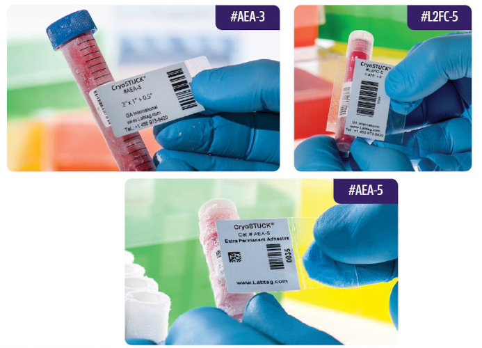 凍結したクライオチューブやバイアル、樹脂製や紙製フリーズボックスなど、凍結条件下ではラベルの貼り付けが難しい容器にすばやく確実に付着します。