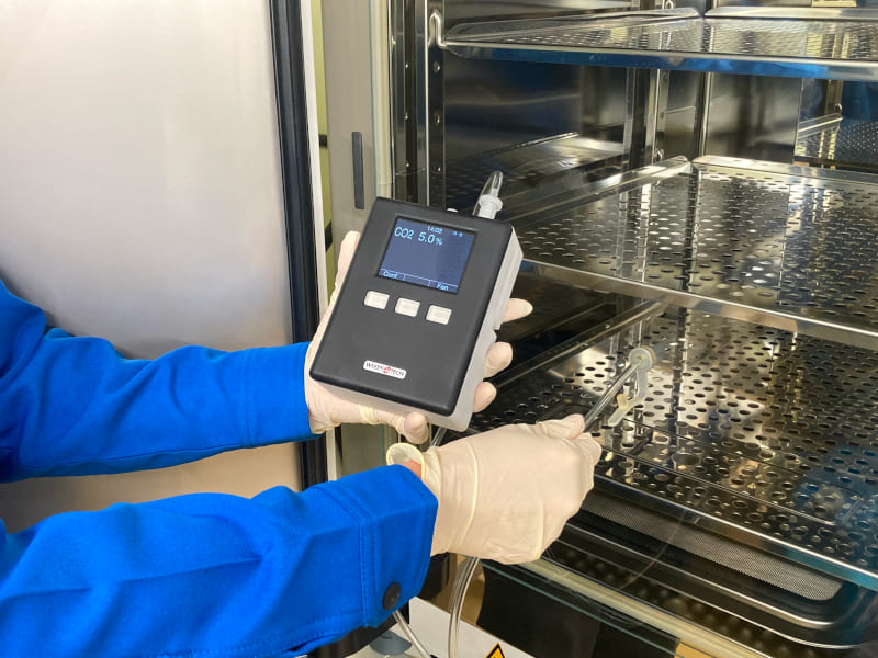 コンパクト設計のため持ち運びが容易で、日常的なインキュベーターのCO₂濃度チェックに最適な製品です。