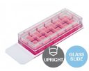 ibidi社のマイクロスライドリムーバブルチャンバーは⽣体適合性の⾼いシリコン素材でできたチャンバーをガラススライドに接着した製品です。細胞培養から免疫蛍光染⾊まで、すべての工程を1つのスライド上で行うことができます。