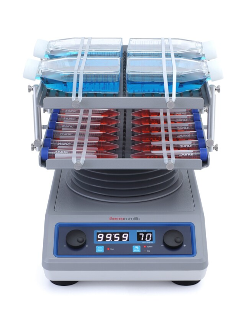 ダブルプラットフォームで多量サンプル処理が可能、正確な速度制御と容易な角度調整で確かなサンプル振盪を実現