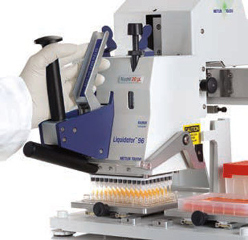 Liquidator 96は、96ウェルプレートが一括で分注できる製品です。分注機の様なプログラミングの必要がなく、使いたいときに使いたい場所で作業ができます。