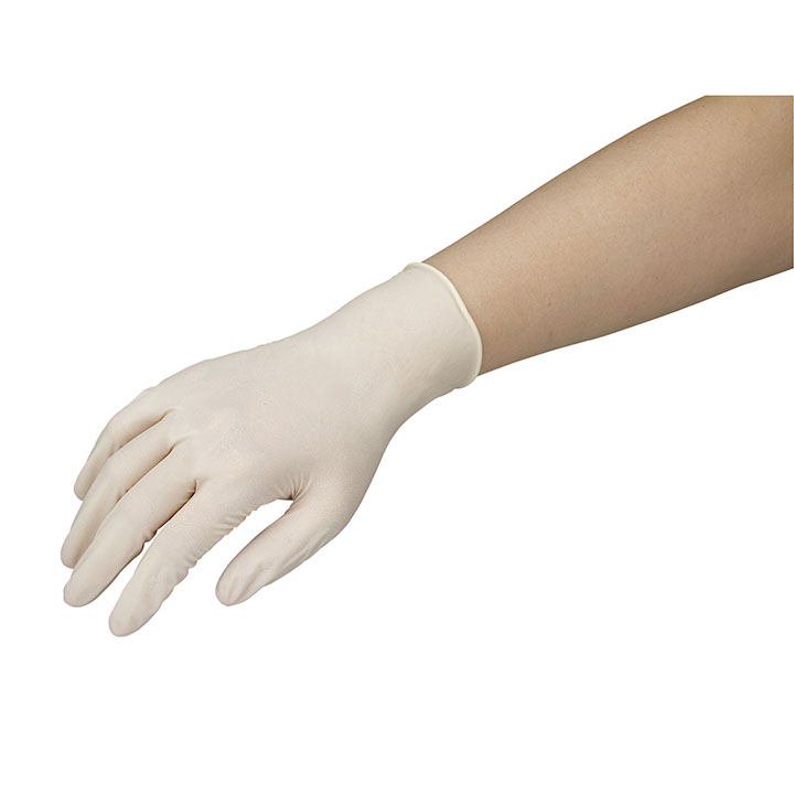 仕様 | 【材質】天然ラテックスゴム 【特長】パウダーフリー/ビード加工カフ/全面エンボス加工 【長さ】240mm 【厚さ】0.13mm(手の平)、0.10mm(カフ)、0.15mm(指先)±0.01mm 【引っ張り強度】22Mpa以上 【弾性/伸長性】800%以上 ISO9001QMS認証、1.5AQL合格、ASTM D3578規格適合 |