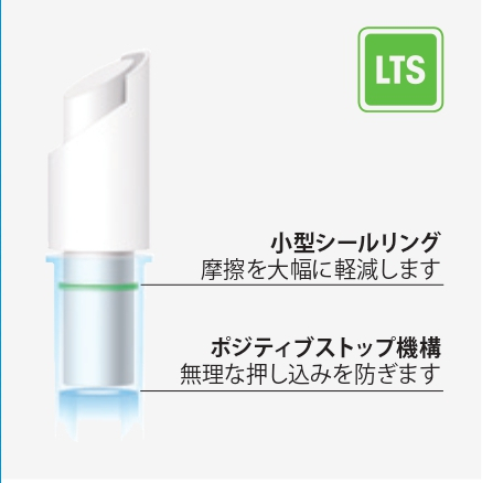LTS™ LiteTouch™ システムはシーリングエリアが小さくポジティブストップが装備されており、チップの着脱に必要な力が少なく、完璧な密封状態を確保します。シャフトにチップを打ち込む必要はありません。LTSはピペットシャフトの摩耗を減らし、ピペットの寿命を延ばします。