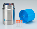 CryoHandyは、1~2mLのチューブサンプルを液体窒素の凍結保存状態で搬送する容器です。温度センサー付きで、フタ天面の温度表示部分から、容器内部の温度を確認することが可能です。(温度記録機能はありません)