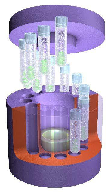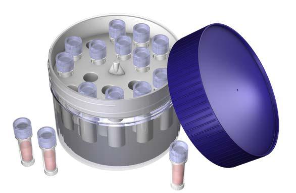 CoolCellにはイソプロパノールなどの液体は不要です。特殊設計と材料により冷却速度を調整し、すべてのチューブ(バイアル)を均一で再現可能な状態で凍結します。