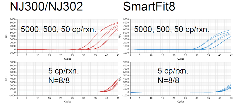 反応性:Ct値(SDM), 低濃度鋳型の検出率ともにNJ300/NJ302とほぼ同等であった