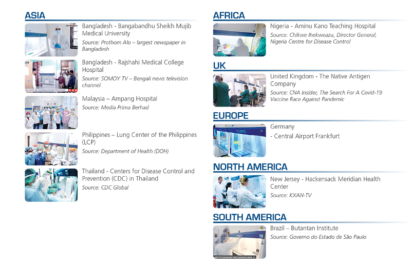 ESCOクラスⅡバイオセフティキャビネットは、世界中の様々な研究施設、検査施設で採用されています。ESCO社は、各国の政府、民間組織の依頼により、各地域のCOVID-19研究施設に安全かつ信頼性のある機器を提供しています。