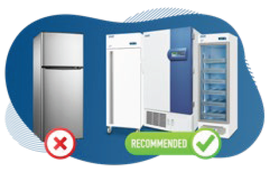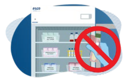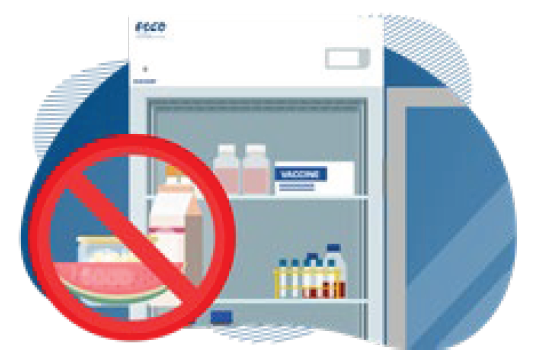 ワクチン保管に使用する貯蔵設備で飲料や食物を一緒に保存してはいけません。研究室の冷蔵機器は消耗品の保存には使用しないでください。