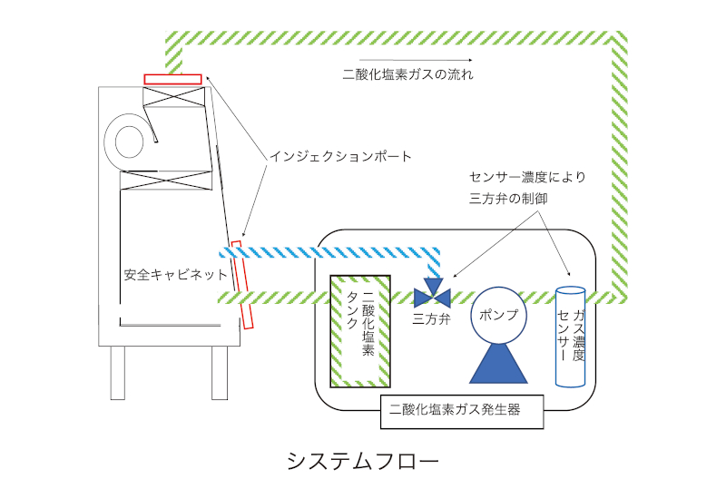 平成20年の特定化学物質障害予防規則(特化則)改定以降、ホルムアルデヒドガスの発がん性が指摘され、安全キャビネット点検を行う上でのホルマリン除染工程も大きな問題となっていました。しかし、二酸化塩素による除染が、その問題を解決します。