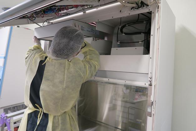 バイオハザード対策用クラスIIキャビネットには定期点検が必要です。
