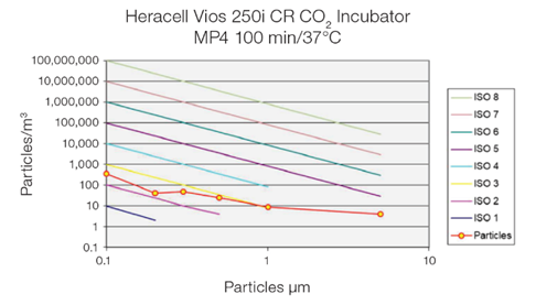クリーンルーム適合CO2インキュベーターは、ISO14644-1[1]に準拠した、グレードAの空気清浄度を満たすことが試験を受け、証明されているものです。これらの試験は、ISO14644-14に従い、独立した専門の第三者機関によって行われます。
