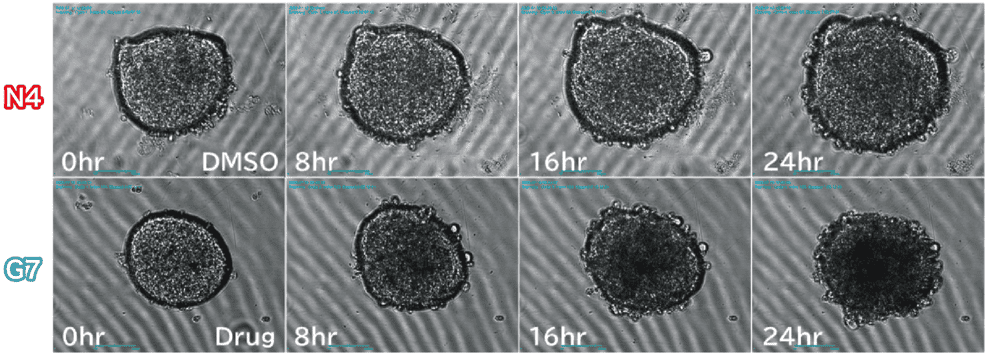 (結果2)N4(DMSO添加)およびG7(Drug添加)ウェルのタイムラプス撮影画像