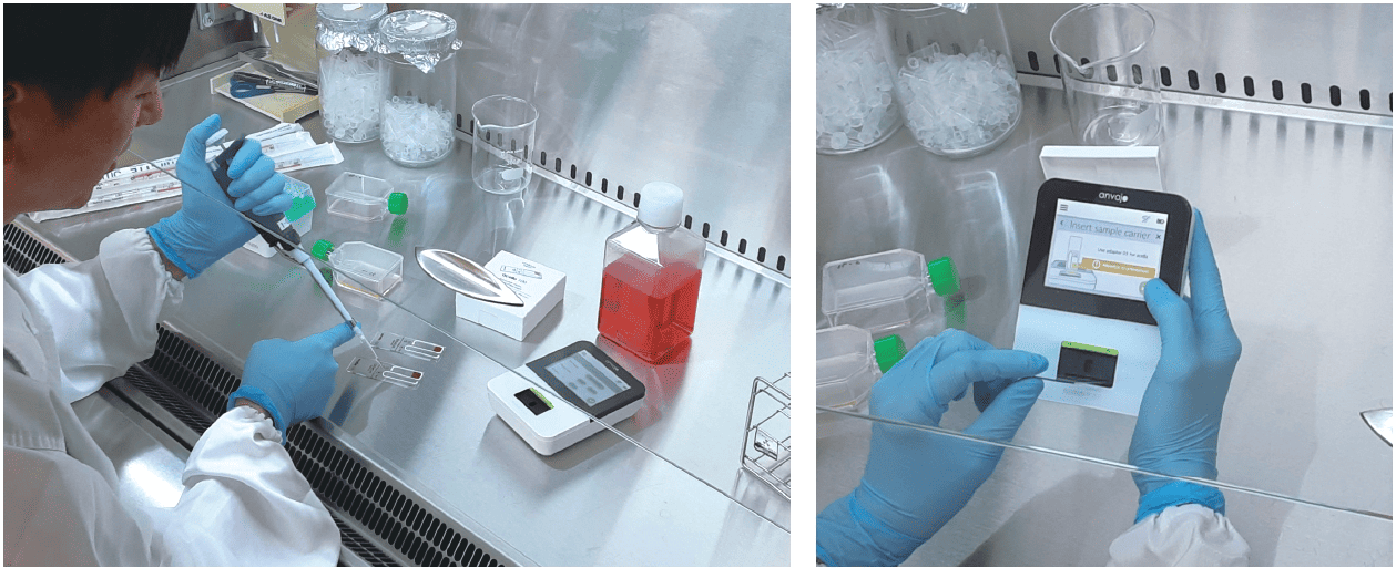 ベンチ内にも容易に持ち運べるコンパクトサイズで、細胞を取り出してすぐに細胞数/生存率を測定できます。染色液の準備が不要なため、想像以上の手軽さを実感いただけます。ぜひデモでお試しください。