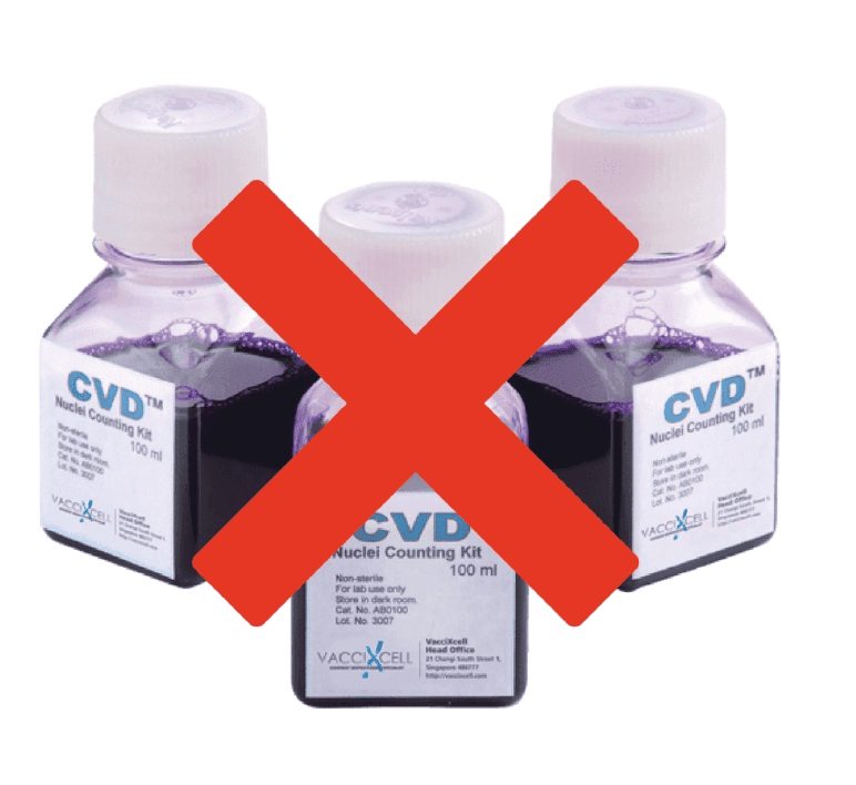 通常トリパンブルーなどを用いた測定は試薬の細胞毒性を誘発する可能性があり、