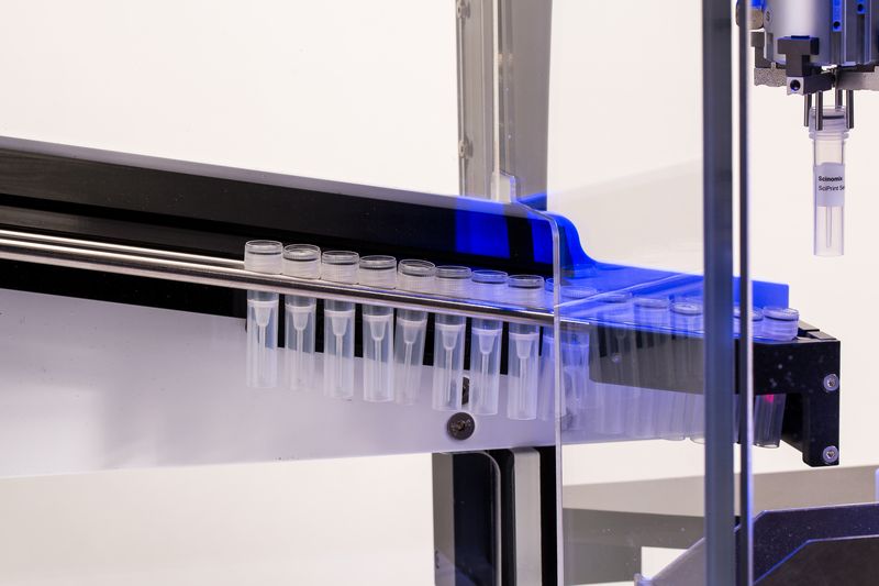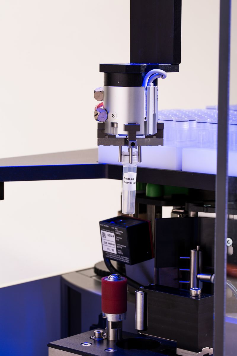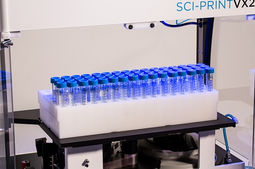 米国Scinomix社のSci-Print VX2/VXLは、大量のチューブに対して、ラベル印字・貼付を高速かつ連続的に処理できる自動ラベリングシステムです。