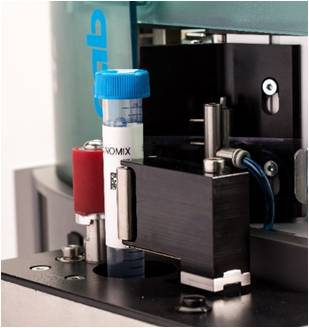 サンプル溶液を自動で分注可能です。キャップはピッカー部で自動で開栓・閉栓します。